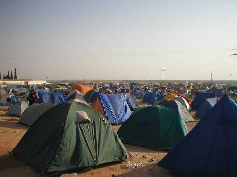 ESPACIO ACAMPADA: Un infierno, mucho, mucho calor, se que esto no es culpa de la organización pero no habia ni una sombra, NI UNA! Los baños era una ruina, preferíamos ir a "cagar" al parking y limpiarte con.. ejem...ejem... Las duchas otra guarrada monumental pero como eran mixtas estaban animadillas, jeje. La ducha costaba 1€. No se porque en la entrada ponían como la zona de acampada incluida en el precio si estaba en la puñetera calle. En cuanto te despertabas por el calor sobre las 9 o 10 de la mañana todos íbamos al pueblo a las zonas de sombra hasta las 5 de la tarde, jeje. Resumiendo, lo peor del festival con diferencia, pero la convivencia hacia que no te importase nada.