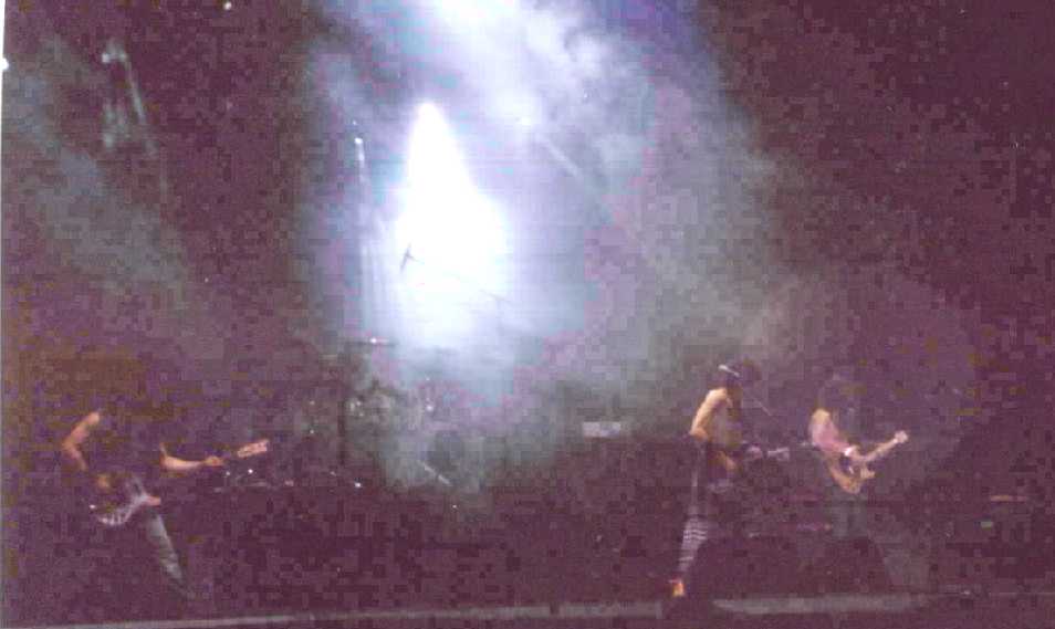 Continuaron desgranando temas más desconocidos como "Prometeo" o "Enemigo" a costa de otros más famosos como "So Payaso", no impidiendo, sin embargo, que continuara creándose paulatinamente una atmósfera propensa de complicidad grupo-público, atmósfera que alcanzó su momento más alto con "Deltoya" con muchos brazos arriba que enervaron los ánimos de la concurrencia y acortaron el camino del éxtasis que culminó con la siguiente que enlazaron "Pepe Botika" en la que el desenfreno que envolvía a Antón, era de tal calibre que acabó, a base de latigazos a la guitarra, girando por el suelo y contagiándonos en esa pérdida de cordura de manera espectacular; todo el polideportivo patas arriba, botando y expulsando lo ingerido por sí, después, los de verde nos hacían "soplar".