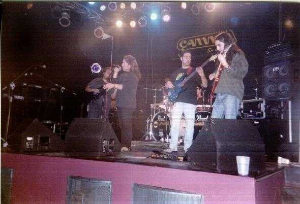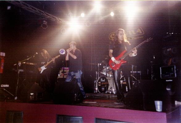 Son un grupo alicantino que vino de la mano de Overlife. Les tocó abrir un concierto que iba a pecar de poco público desde el principio hasta el fin (no llegaría a 2 centenares), pero sobre todo al principio. Un público reducido, pero muy atento a lo que sucedía en el escenario. Y en el escenario, buenos instrumentistas, un cantante con un par de puños bien puestos y música Heavy-Rock. Se entregaron de principio a fin, sin dejarse enfriar por el ambiente del abajo. Pepe el cantante es un gran show-man. Si se hubiera tratado de una banda medianamente conocida, habría hecho una excelente papel en cuanto a imagen, eso sí, quizá la imagen no es que sea original precisamente, pues los que hemos visto a Ripper (Judas) pudimos ver mucho parecido (incluido el físico). Creo que todos los temas que tocaron eran suyos excepto una versión de La Dama, en la que también me pareció observar que Vicente (bajo) había visto más de un concierto (en vivo o en video) de Maiden, e incluso me pareció ver a Steve Harris. Cerraron con una más que aceptable "Doble Personalidad". Nos hicimos con su CD (por 100 duros / 3 €), aunque resultó ser una demo de 2 canciones (otra sorpresa de la noche). Bueno, esperemos volver a verles.