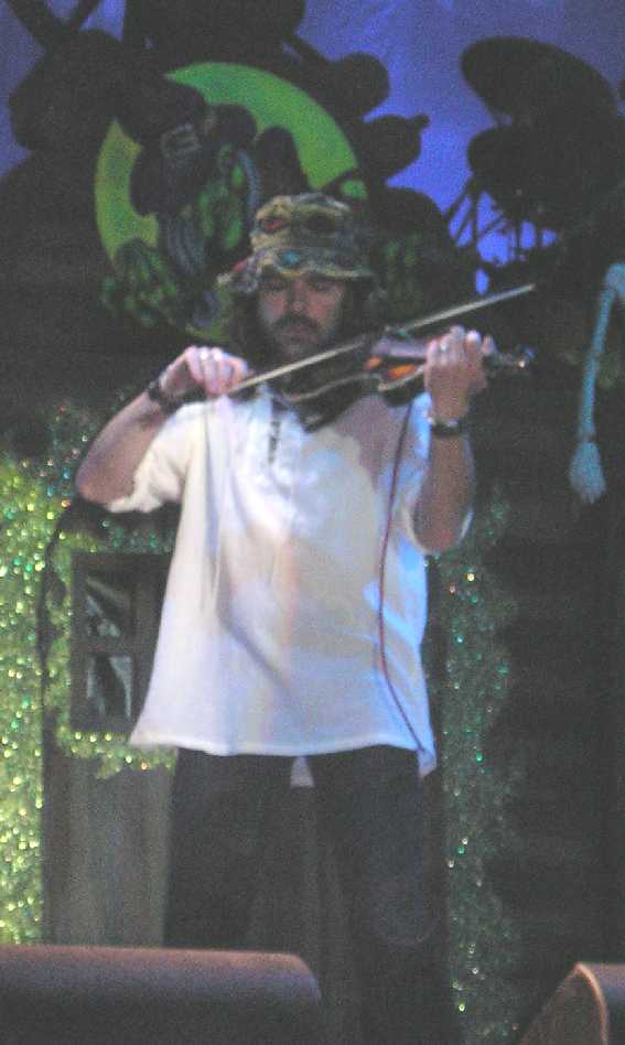 Sí, habéis leído bien –Jorge Salan- , el talentoso guitarrista que ha colaborado en el disco de baladas de José Andrea, que acudió para sustituir a Carlitos que ha tenido una intervención en la muñeca y estará un mes de rehabilitación. Y vuelta a su última referencia discográfica con "El árbol de la Noche triste", una preciosa balada en contra de la esclavitud. Con todas las gargantas colaborando en el estribillo. Seguimos suavemente con la introducción del tema "Gaia" hasta que la potente voz de José nos deja a todos con la boca abierta, pero sin palabras. Durante este largo tema, flauta y violín van saliendo y entrando al escenario según las necesidades. El final del tema lo teatralizan con una ejecución en silla eléctrica y con unos gritos, a su vez, electrizantes.