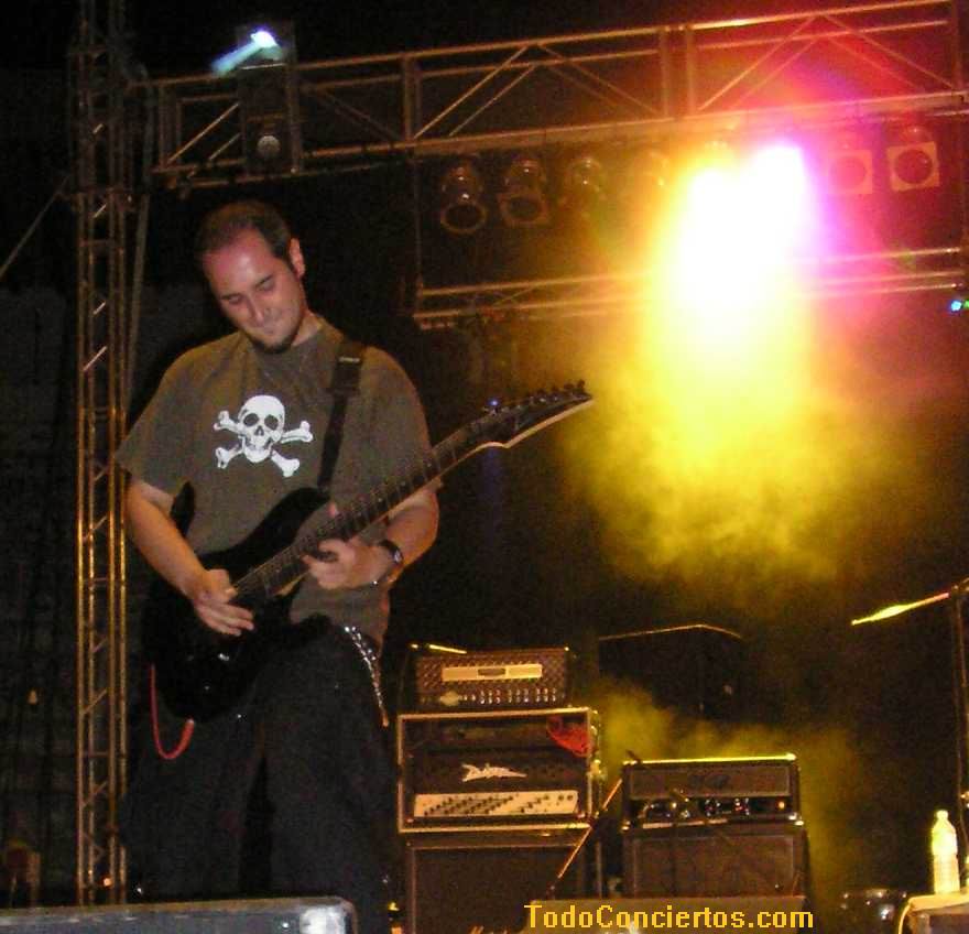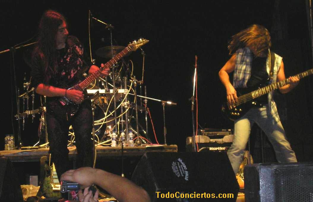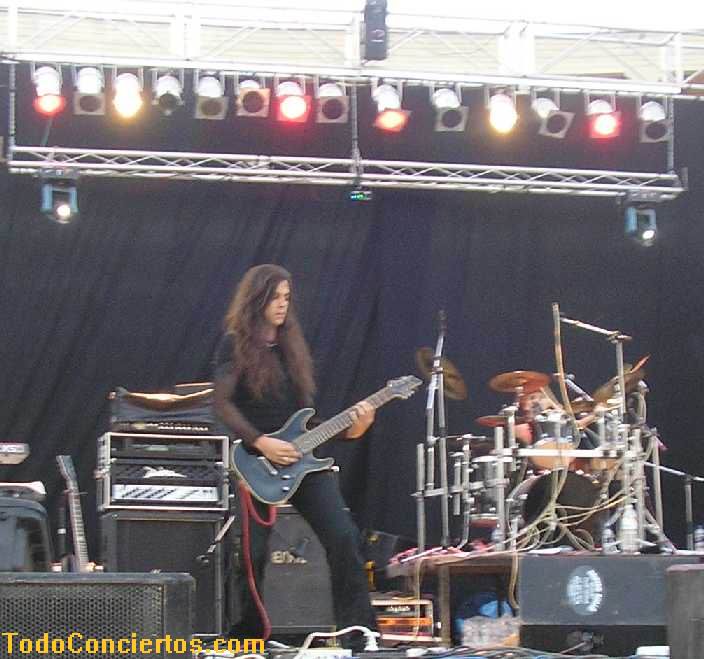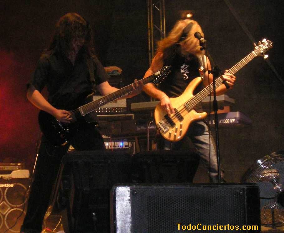 Eran casi las doce de la noche, y mucha gente que acudió al concierto con el reclamo de Jorge Salán (Guitarra soliste de Mago de Oz), que ya se encargó la organización de indicarlo en el cartel, se marcharon a sobarla. No se que esperaban ellos del festival, pero realmente quedaba mucho. Dos horas del heavy más heavy de toda la noche. Yo, que no andaba muy convencido de sus posibilidades tras oír alguno de sus discos (mucho parecido a... y a...), no podía, ni mucho menos, pensar lo que iba a disfrutar con esta actuación.