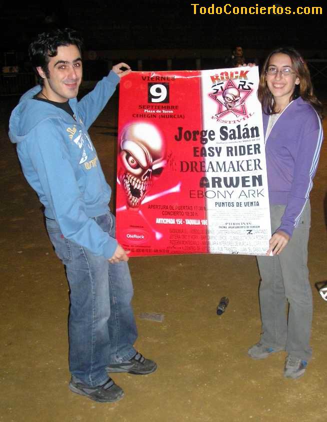 Puntuales a la cita Primeras fotos (Ebony Ark) Media noche esperando para cenar y otra media cenando Más fotos (Arwen) Vino de Suiza a las Fiestas El más loco y su cuadrilla Los colegas de Bullas Una peña conspirando el los aseos Trofeo: La camiseta firmada Trofeo: El cartel firmado Trofeo: Entradas firmadas y púa Trofeo: Set-list de Easy Rider Más fotos (Easy Rider)... y más, y más...