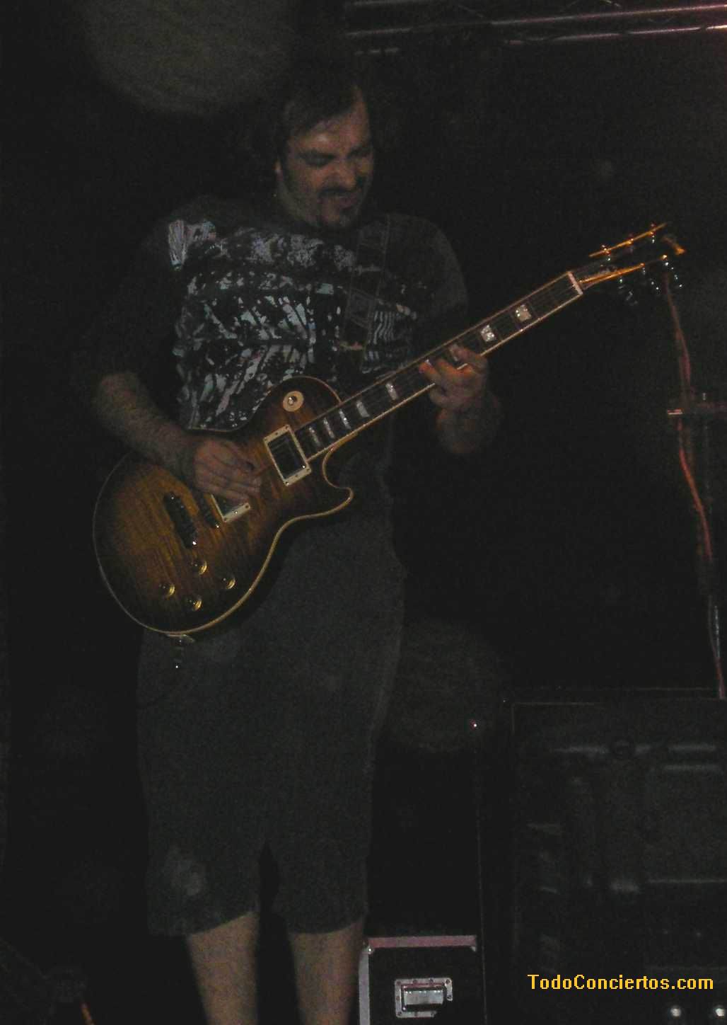 Tras un extenso y técnico solo de batería, que, salvo escasos momentos, resultó tedioso y cansino (pienso que hay que musicalizar más el desarrollo, además de dar oportunidad y alentar la participación del público con palmas…). En cambio entró Jorge, y nos deleitó con un largo blues, que por momentos me sonaba hasta conocido (The kids wanna Rock¿?), con una magnífica interpretación y puesta en escena. Este blues lo enlazó con una más experimental "Pathways to Death" del que no nos perdimos detalle.