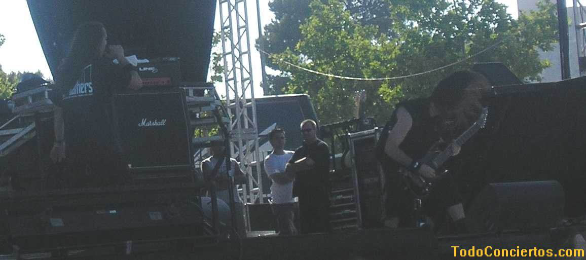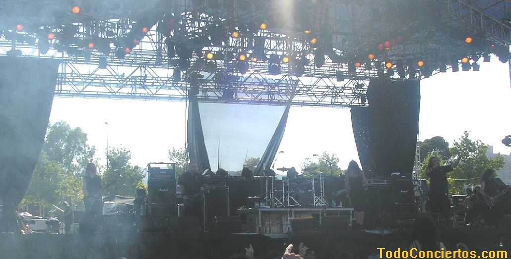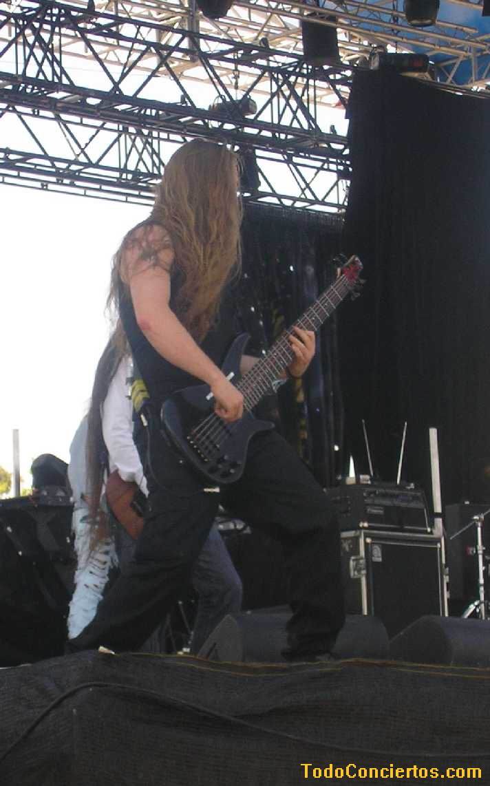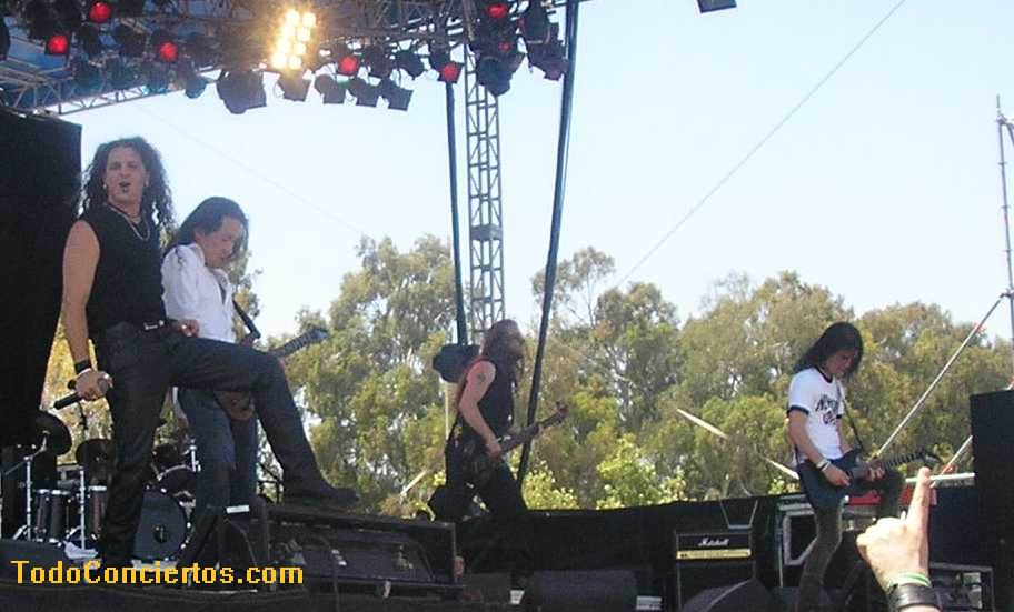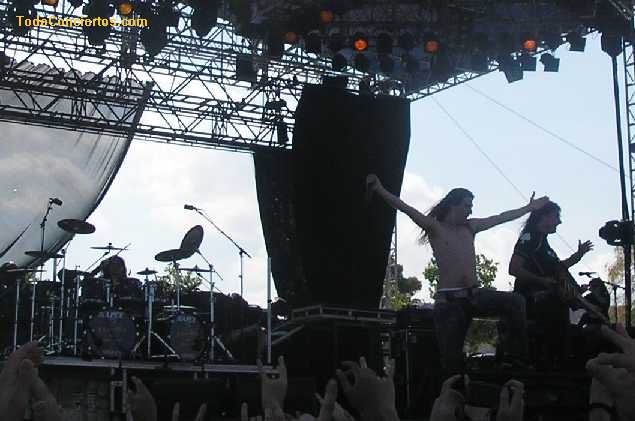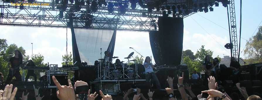 Cierto es que, musicalmente, no pasean la bandera del Heavy más duro del mercado, pero experiencia con este público no les falta, pues han estado en los festivales más famosos del viejo continente. Como digo, la puesta en escena que mostraron fue de lo más "Metallico" del festival. Todos vestidos de negro (aunque no riguroso) y largas melenas que constantemente agitaban por grupos, tres, cuatro o cinco miembros de la banda al unísono. Además, Andi (vocalista masculino) guturalizaba casi todo lo que se le pusiera por delante (la deficiencia del sonido ayudaba lo suyo).