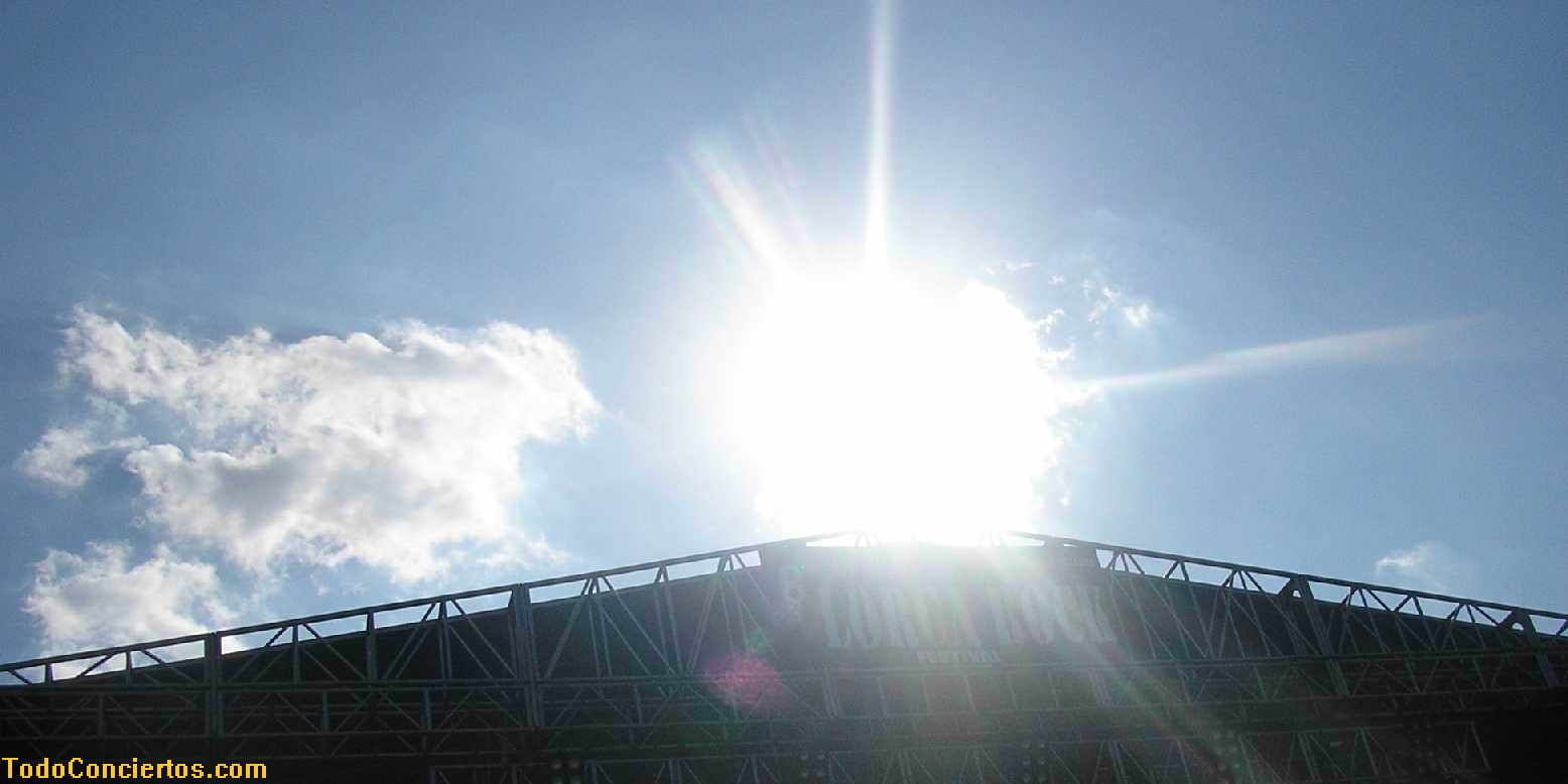 - ESCENARIO: Adecuado, en dimensión y ubicación. (Los que marcan el tamaño son los Iron Maiden, por su parafernalia, y cupo perfectamente. Al resto de bandas... les sobra. En cuanto a la ubicación, pues tuvimos que sufrir el sol de cara, pero nosotros somos más duros que los músicos. Si hubiese sido al revés igual ni salen) Un detalle que eché en falta, al menos en la actuación de Stryper (salvo Maiden, el resto fue a la luz del día) fue un telón que cubriera totalmente el fondo del escenario y evitara la vista de las farolas de la calle luciendo.