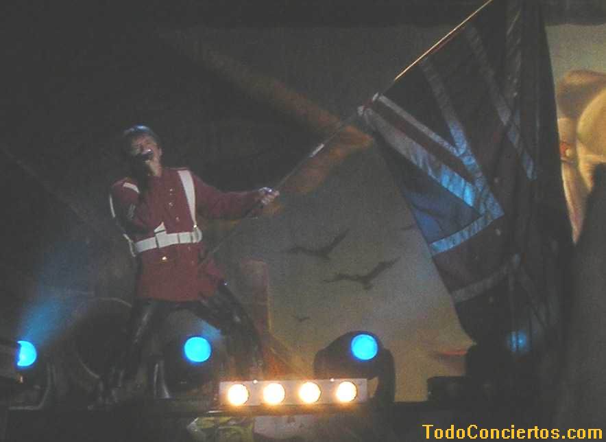 El primer gran trallazo que enloqueció a la plebe vino de la mano de "The Trooper", la locura masificada, agitaba sus manos a la par que las gargantas ante un poderoso Dickinson que , disfrazado de soldado, pateaba por primera vez la plataforma superior izando la vieja y agujereada bandera inglesa, de uno a otro lado, mientras el maestro Harris motivaba al respetable adelantando el bajo en esa postura característica.