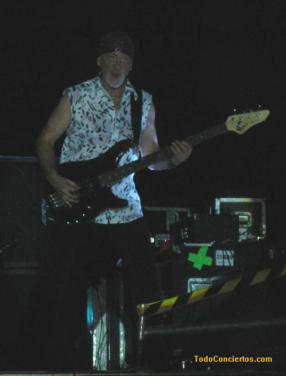 Roger Glover, al bajo (y es que como Gillan, son 60 tacos) musicalmente se ciñe a su papel, con maestría pero sin alardes. Con su pañuelo en el pelo y su cara simpática (el más alegre de todos, siempre sonriendo) da muy buen rollo a la imagen de la banda.