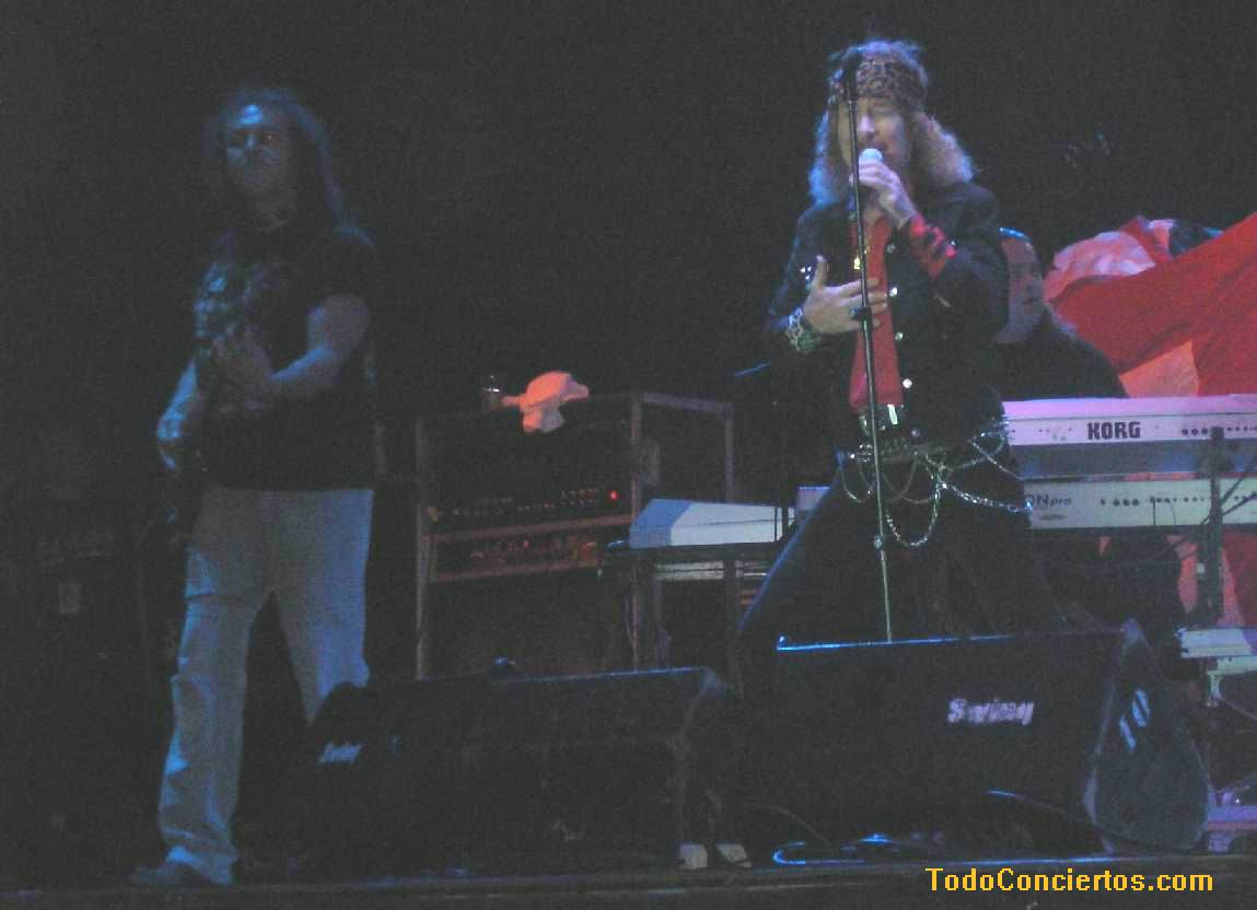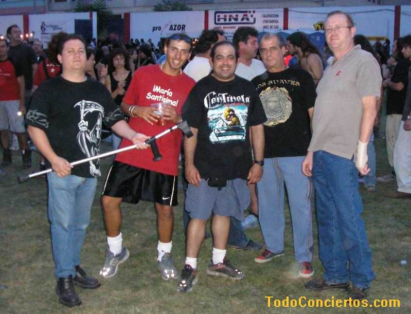 Reconozco que habían fijado un listón muy alto de superar, pero no esperaba el bajo nivel ofrecido hoy. Como era predecible, con "Intro-El clan de la lucha" inician su andadura musical, ante un público ansioso de disfrutar emociones más fuertes. "Vientos de guerra" prosigue a la intro, notando algún pequeño fallo en el micro de Leo, que pronto se subsanó. Con este tema me llevé el primer desengaño de la noche, no sonaban bien. También noté la voz de Leo en condiciones muy mermadas a las habituales en él, propias de un profesor de canto como es él. "Perro traidor" se encargó de subir el nivel, con un coreado generalizado del estribillo y despegando del césped con grandes saltos. Siguiendo el mismo guión de su actuación en la sala Gamma, llega el momento para "Angel de barro", un gran tema que me resultó flojo para disgusto personal mío. A continuación, "Con mano izquierda" sonó de manera muy distinta a la que estoy acostumbrado, es decir, no sonó como música celestial a mis oídos.