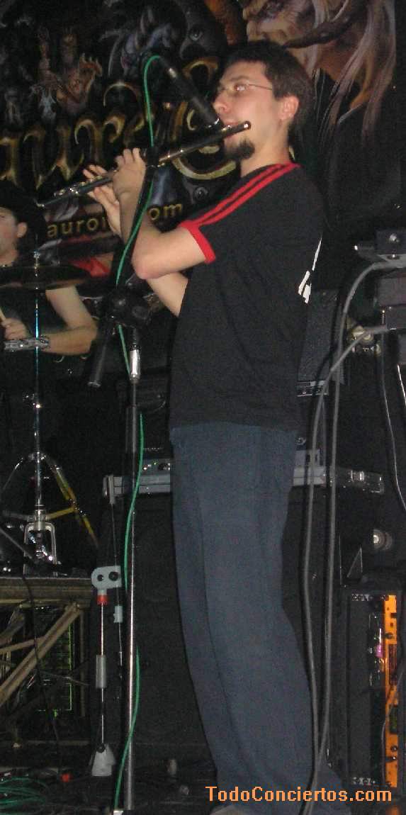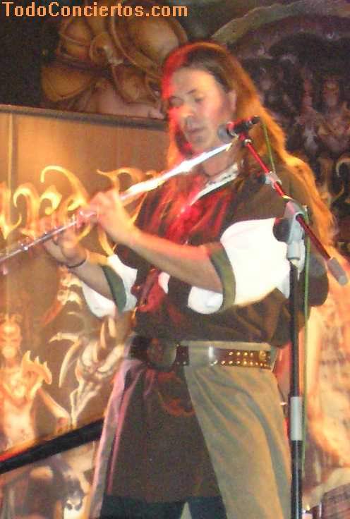 Una corta "intro" daba paso, con traspiés incluido en el sonido, al tema "Tiempos Oscuros", el tema más cañero de su disco, recién sacado a la venta, "Sueños Celtas". Este disco realmente está grabado más de un año, pero Historias Discográficas Para No Dormir han retrasado su salida más de 15 meses. Mi primera impresión fue de asombro, pues no recordaba del primer disco (el único que había escuchado) nada parecido. La potencia del tema se salía de mi previsión, pero de alguna manera, lo agradecía. Siempre es bueno llegar hasta la médula desde el comienzo.