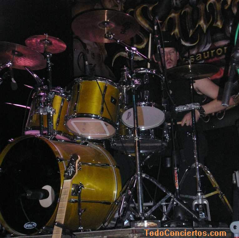 Magnífico concierto el de Saurom, Magnífico el Público. Buena puesta en escena, en general, con mucha movilidad por parte de los guitarristas , que en varias ocasiones se unieron en el frontal del escenario con sus mástiles, dejando una típica postal heavy. Realmente extraño el teclado (con esa extraña cara, el pelo corto y el auricular de telefonista), parecía más bien un dj pastillero, pero llevaba y transmitía una marcha increíble. A Antonio, a la batería, se le veía relajado y disfrutando de la noche (bueno, en realidad se le veían los brazos correr de un plato a otro). De Migue, prácticamente lo he dicho todo. De voz estuvo soberbio (aunque se quejara), siempre bromista, y despistado y agobiado en algún momento, pero con su desenfado andaluz caló entre la peña.
