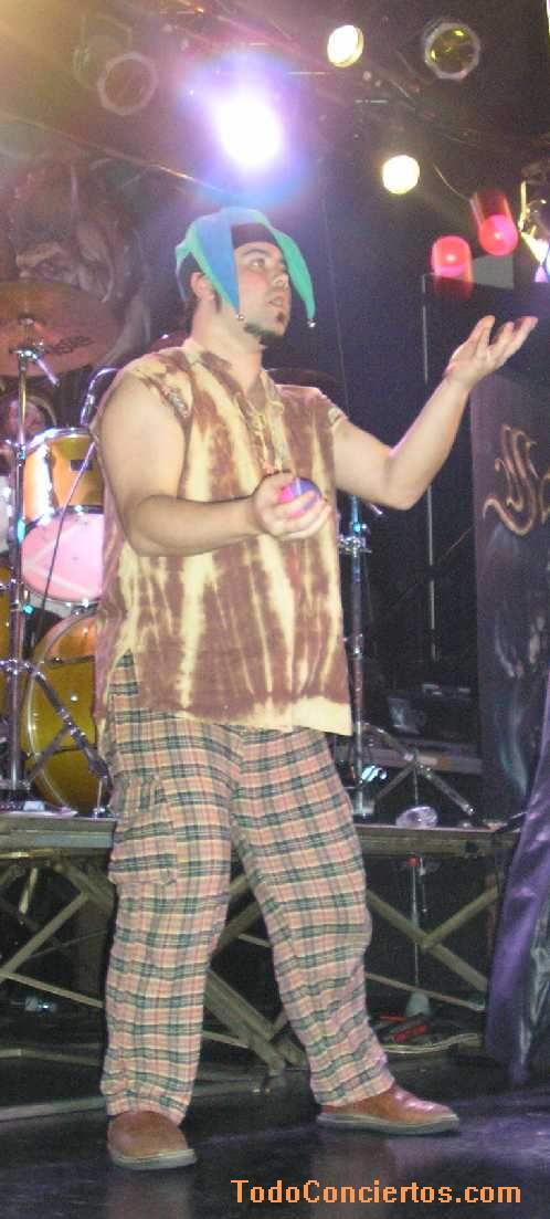 Costó empezar la canción, pues Raúl se había escondido detrás de uno de los carteles, (posiblemente a cambiar alguna cuerda) y Migue se las vio y se las deseó para mantenernos entretenidos. Aprovechó para saludar a Landevir y quiso provocar a Santi para que le echara una mano. Durante el tema subió Manu a realizar unos malabarismos con tres pelotas (podía haber subido antes y el vocalista se lo hubiera agradecido). Manu se maneja muy bien, realiza una gran variedad de juegos, y para, en alguna ocasión, para alentar al público a que cante más y más. Jose (bajo) le cede su espacio, pues ahora es el centro de las miradas.