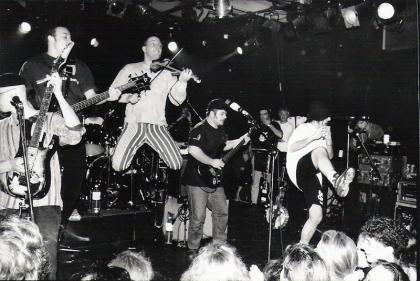 El grupo empezó a tocar sobre las 12:20 con una de esas instrumentales que tienen ellos (es que distinguir entre una y otra de las tantas que tienen instrumentales es bastante difícil, pero al final me las aprenderé de tanto escucharlos). Continuaron con "El Emigrante", una de esas canciones que animan a la gente al principio de un concierto, así es que empezamos calentitos. La siguiente fue "Esta vez", canción del disco nuevo en el que aparecen 5 canciones nuevas que vuelven un poquito a sus orígenes de siempre. Las canciones que siguieron fueron de esas míticas como "Lluvia en Soledad", "Gente Impresentable", "Tienes la puerta abierta" o "Madera de Colleja", que todos sabemos que son canciones muy buenas y que merecen la pena escuchar de vez en cuando, en las cuales se animaron Jose L. Sendino y Goyoqeu estuvieron muy activos en todo el concierto animando mucho muchísimo al público. No se olvidaron de promocionar un poquito el disco de '20 Soplando Versos' (el Ultimo) y volvieron con 2 canciones que están dentro de este Cd, como son "Por ser de Valladolid" y "Tres amigos". Hicieron un pequeño descanso, pero enseguida volvieron con otra instrumental y por supuesto con "20 de Abril", la cual no la terminaron, el por qué habrá que preguntárselo a ellos, pero la última parte de la canción no la tocaron y nos quedamos a medio, pero bueno así son los conciertos de vez en cuando, así es que se fueron con "Skaparate Nacional" y "Haz turismo" con la que Cifu presentó a todo el grupo con sus peculiares comentarios, y terminaron este 2º "entreacto" con "La Senda del Tiempo", la cual comenzó con Antón y su flauta endulzando a las bestias para esta maravillosa canción. Volvieron a irse, y cuando ya creíamos que iba a ser el concierto más corto de lo normal (eran la 1:10), salieron Goyo y Antón (este último no estoy muy seguro, pero creo que era él), y nos deleitaron tocando las cajas, a los cuales se animaron Jorge (acordeón y teclados), Alberto García (violín) y José Sendito (guitarra) y nos hicieron un solo cada uno al ritmo de estas cajas. Por último tocaron "Tranquilo Majete" y para rematar "No nos podrán parar", y así dejar a la gente exhausta tras una hora y cuarto de concierto y más de cuatro horas de música en total (1:30).