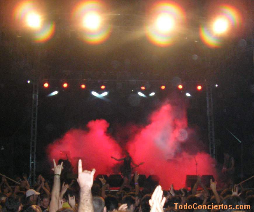A las 0:50 horas, con la escucha de los primeros acordes que salían del muro de amplificadores que habían instalado (gozaron de un magnífico sonido toda la noche), la marabunta se desplazó hacia el escenario, asfixiando al más pintao. Algún vaso volando, patadas por doquier, y yo que me retiro junto a la mesa de sonido para salir indemne. Pero ¡cuidado!, que los que se han quedado atrás dicha mesa, ¡son los que más espacio necesitan para bailar!