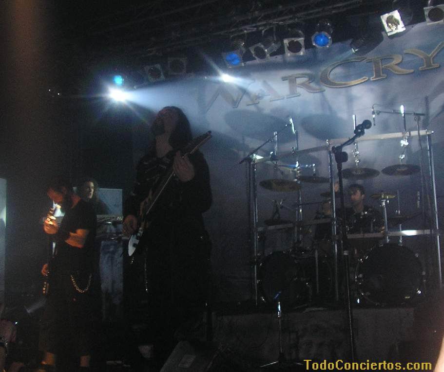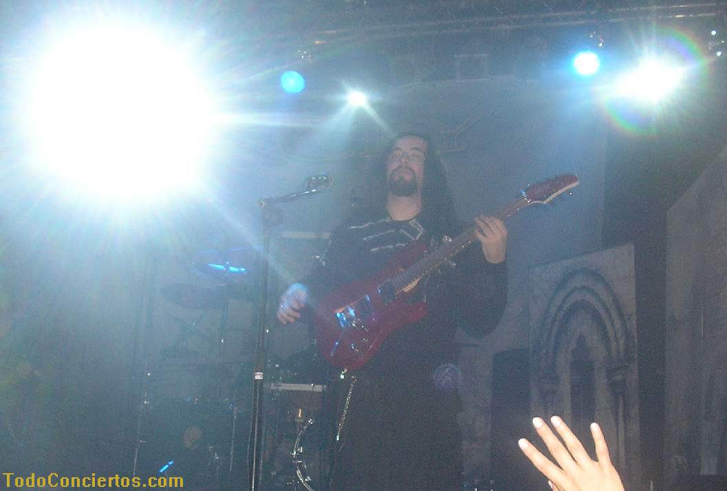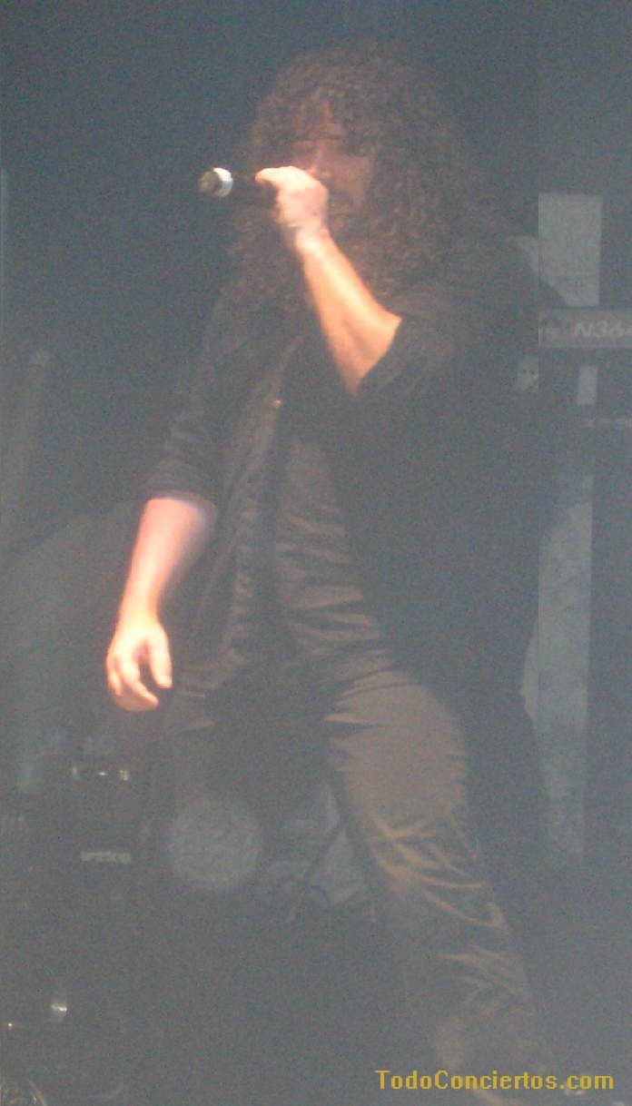Sobre el escenario pudimos ver a un Víctor muy activo, que junto al guitarrista Pablo García tomaban la primera línea de batalla como algo personal. Fernando estuvo, como de costumbre, algo más estático, quizá le vi moverse con "Nuevo Mundo" y poco más. Pero en lo suyo.... en lo suyo estuvo fenomenal. El sonido no era nítido para ninguna de las guitarras, pero sus solos (pocos) superaban esta adversidad. No quedaban tan claros los de Pablo, que aún viéndose muy rápidos, más parecían acelerados (bueno, fue mi apreciación). Manuel estuvo muy participativo en cuanto a lo musical, poco más se puede hacer desde su pedestal y Alberto, genial a la batería, destacando sobre todo el los temas más rápidos (a pesar de no gozar tampoco de buen sonido, al menos desde mi posición)...