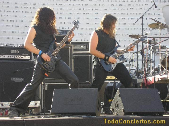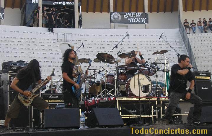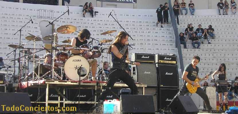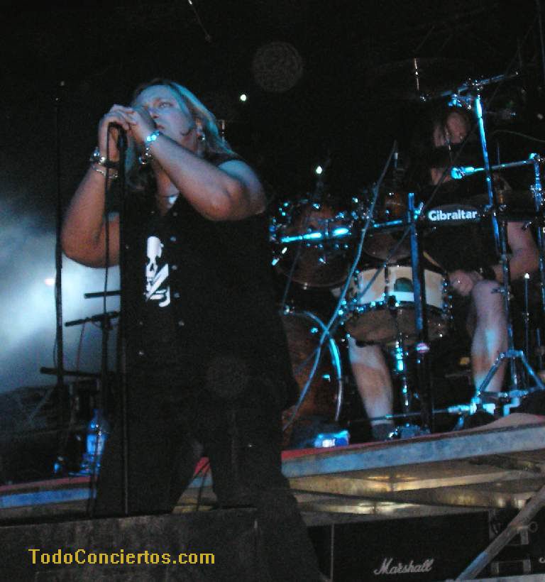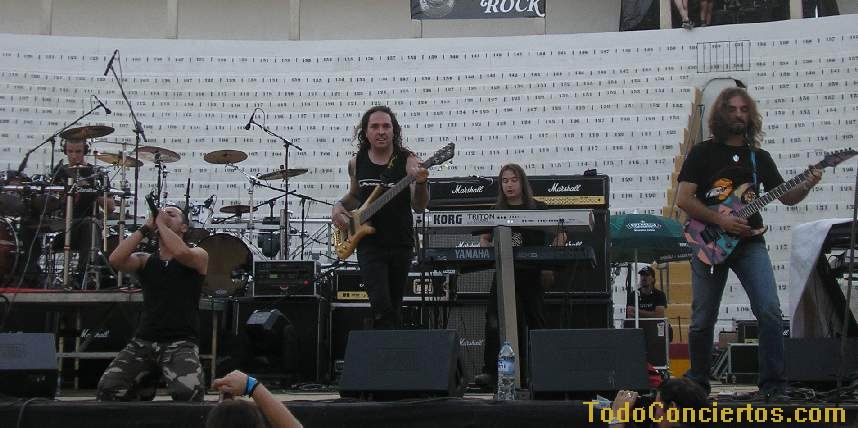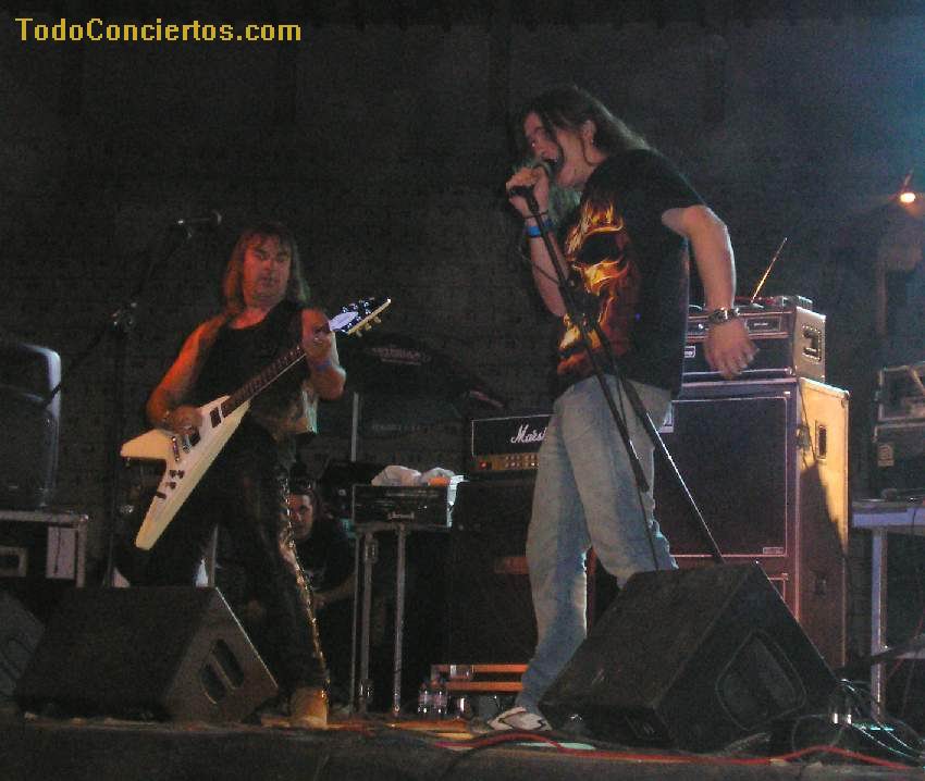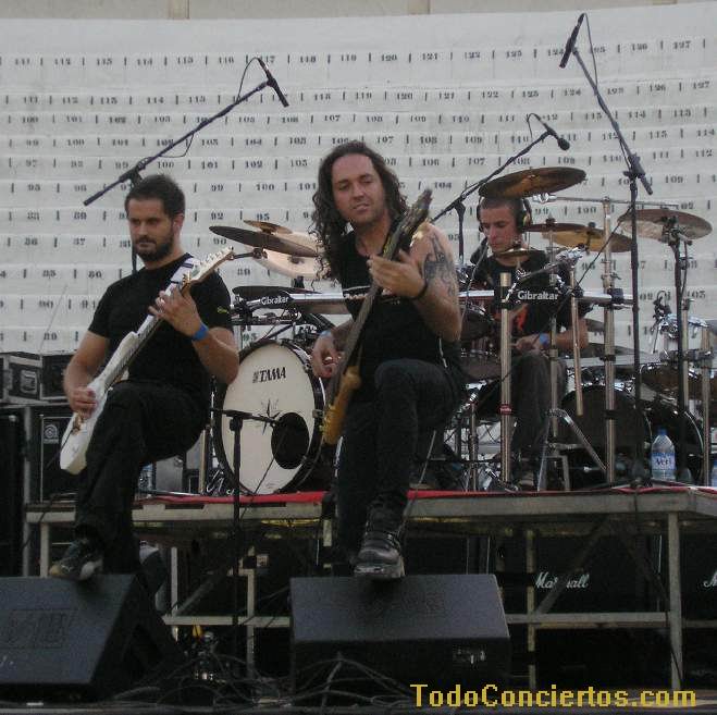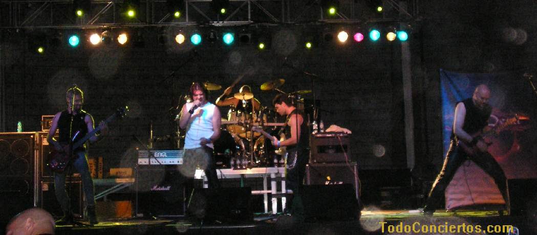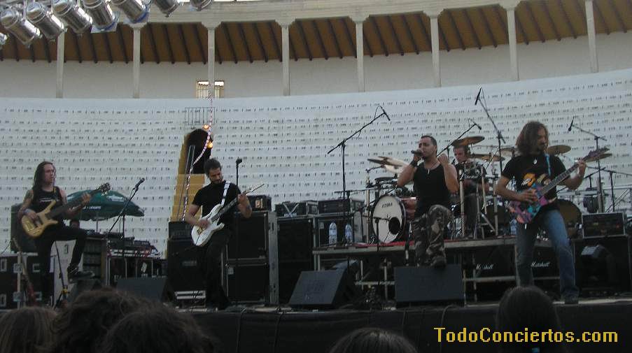 Poniéndole mala cara al buen tiempo, hicimos frente al sol de justicia, que a pesar de ser las 19:00h pegaba con una fuerza increíble. Muchos de los aficionados optaban por aguantar en las pocas sombras del exterior de la Plaza de Toros, otros en las pocas interiores, pero los más valientes aguantamos en la arena para escuchar la propuesta de estos alicantinos. Practican un heavy potente y rápido cantado en inglés, con muy buen resultado en "my space", pero el sonido que "disfrutamos" durante toda la noche empequeñecía su calidad. No su potencia ni su ilusión, acrecentada, sobre todo, por un gran número de entusiastas seguidores, muchos de ellos venidos de la "millor terreta del mon", que no pararon de agitarse delante del escenario y fomentar la complicidad con el grupo.