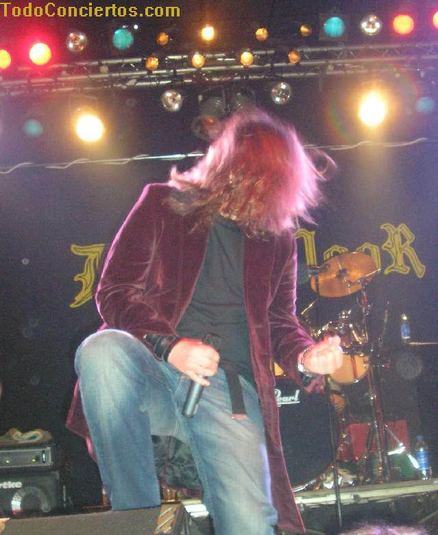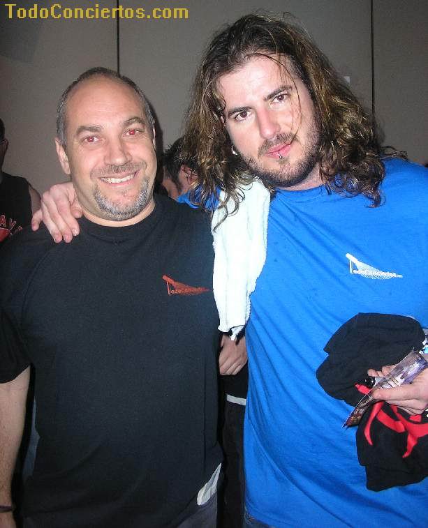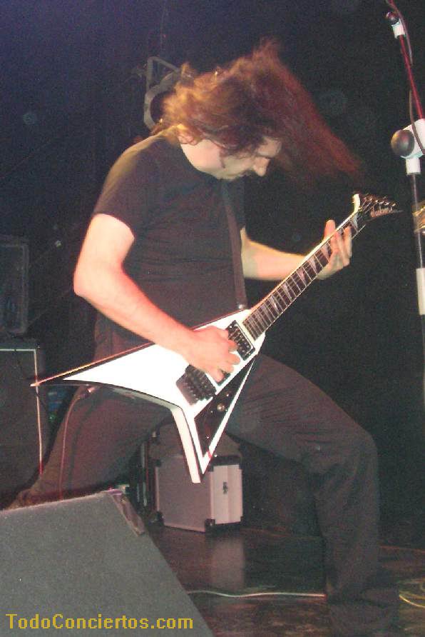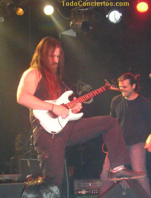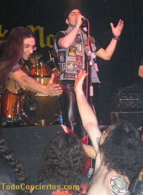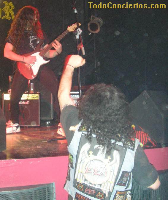 Continúan con "Death", y noto claramente la disociación sonora (en volumen y calidad) entre los rifs en directo y las aportaciones del teclado grabadas (es una de las partes que más me gusta del disco, lo esperaba con ilusión). Bueno, el concierto está recién iniciado, y Enrik ya se está machacando fuertemente y Alfred, desde el primer momento, intenta hacer partícipe al público de las canciones (¡¡somos duros pal inglés, ¿eeh?!!)