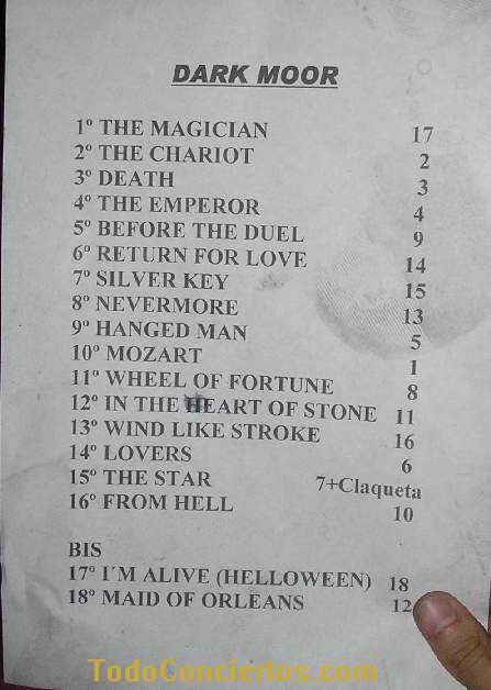 El concierto, en general estuvo bastante bien. Por supuesto, se pueden mejorar cosas, que no pienso repetir, y algún detalle, como el echo de olvidar por completo la etapa de Elisa en el set-list (realmente tenían prevista alguna, pero puestos a quitar, fueron éstas las que pagaron el pato), y el finalizar con una versión, por muy buena que sea (tengo yo mi manía de que eso es de principiantes que no tienen confianza en sus propios temas para dejar el listón en lo alto, pero Dark Moor está a otro nivel)