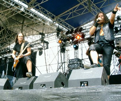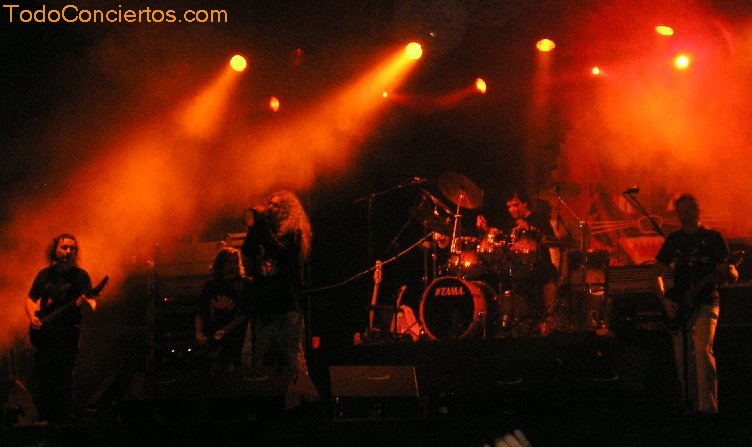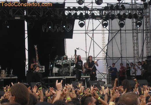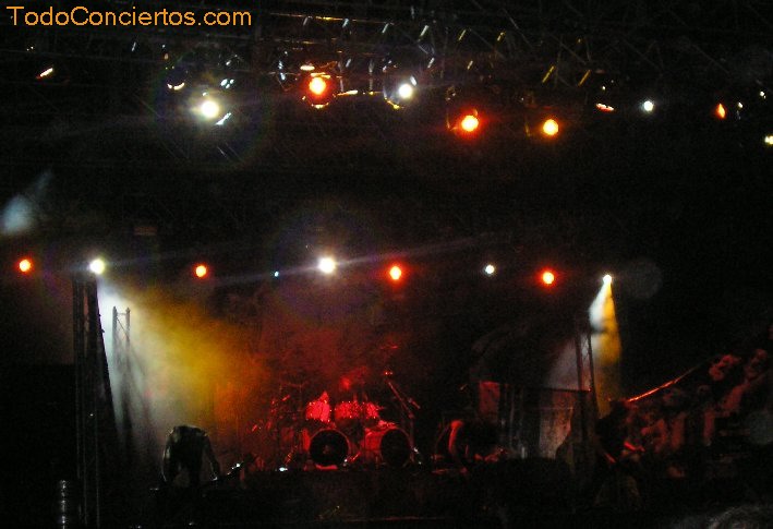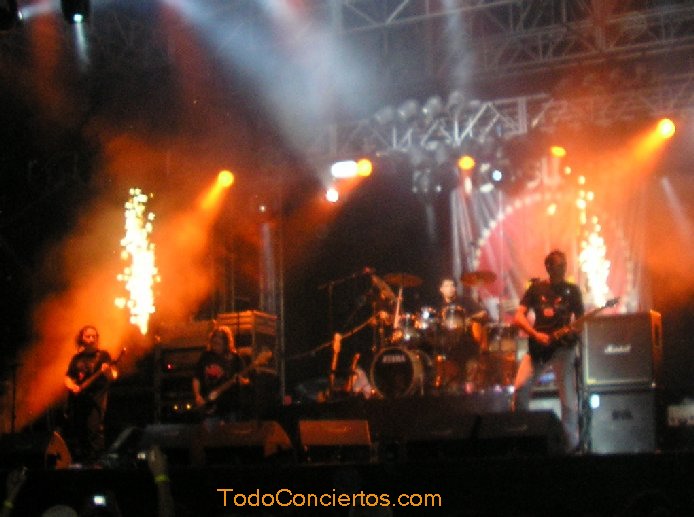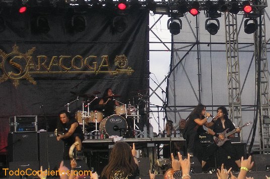 Empiezan con "¡Qué vangan ya!", y ¡todavía me parece nueva! Tiene dos años y están a punto de publicar nuevo disco; tendré que ponerme más al loro. Pero por la reacción del público, ya parece un clásico. El reparto de las canciones respecto a los disco no se hace muy equitativo, seleccionando cuatro de ‘La quinta esencia’ y ninguno de ‘Alea jacta est’. Quizá las más flojillas, en cuanto a seguimiento vinieron a ser "Un poco de fe" y "Más allá", aunque esta última, a mí me encanta. El resto de las canciones están más que escuchadas y cantadas por todos. Por cierto, que yo pronto dejé de cantar, mis colaboraciones con Saratoga, Barón Rojo y Warcry habían agotado mis cuerdas vocales, y fue entonces cuando descubrí que no se oía un carajo la voz de Víctor. Tampoco se escuchaban decentemente los instrumentos. Creo que fue bastante peor que con Kreator, o al menos a mí me lo pareció. Nadie hizo nada. Tuvimos que aguantar todo el concierto como si lleváramos tapones en los oídos. El día siguiente había mejorado muy poco este escenario.