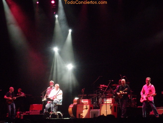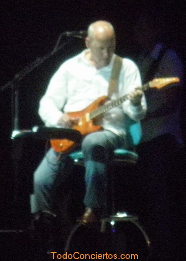 Después de esta apertura de concierto, era hora de calmar los ánimos y deleitarnos con algo mas tranquilo y el tema elegido para este menester fue “Sailing to Philadelphia”, tema que da nombre a su segundo disco. Tras la canción Mark dedicó unas palabras al público, lo típico, “como estáis, ¿estáis bien? “ “estamos en un bonito lugar” luego explicó que tras tener un accidente, el médico no le aconsejaba bailar en la discoteca y que por eso tocaba sentado en su sillón, y que estaba a gusto porque como el sillón era giratorio, le permitía mirar para un lado, mirar para otro…